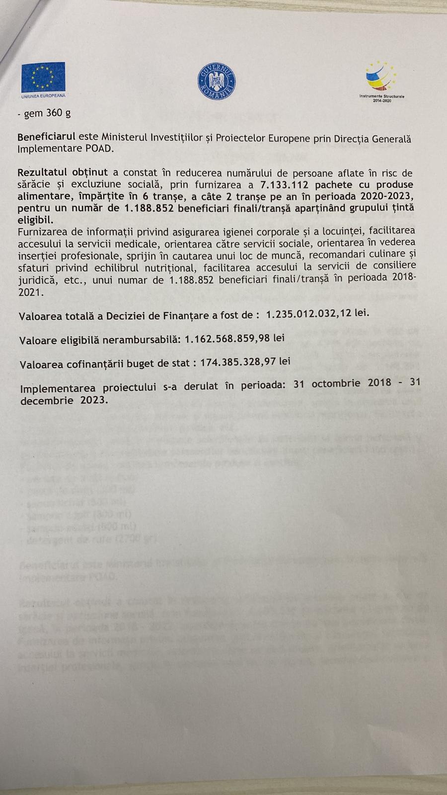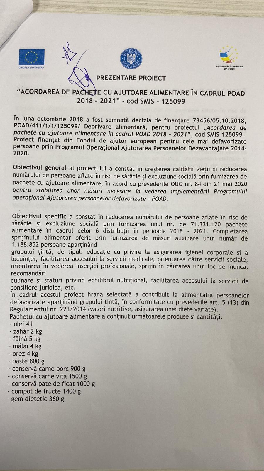 ACORDAREA DE PACHETE CU AJUTOARE ALIMENTARE IN CADRUL POAD 2018-2021