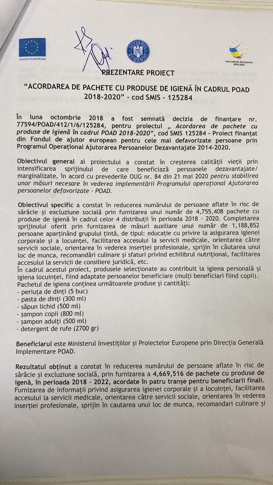 ACORDAREA DE PACHETE CU PRODUSE DE IGIENA IN CADRUL POAD 2018-2020